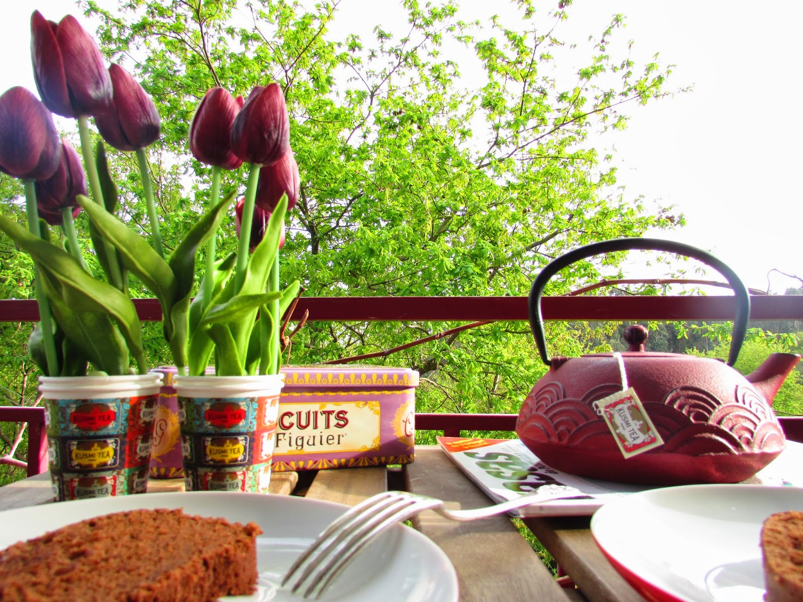 ResponderEliminarSuch a delight to sit on your balcony already and enjoy the sun, delicious looking cake and pretty tulips!!